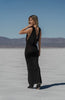Vestido confeccionado en seda fría con avío en escote fabricado en niquel