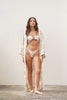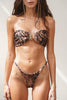 Bikini confeccionada en Lycra estampada doble grosor con avio tipo charm de la marca en Zamak