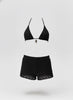 Set de top y short con tela similar tejido crochet con forreria color piel