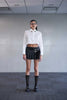 Pollera de eco cuero con piel sintética, con cinturón desmontable para mayor versatilidad. Incluye argolla grabada con logo, que aporta un detalle elegante. Posee cierre lateral para facilitar su colocación. La tabla de talles en las fotos te ayudará a elegir la opción perfecta. Ideal para un estilo moderno y sofisticado en cualquier ocasión.